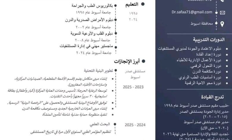 لذا ، كافئها الله سبحانه وتعالى وكلل مجهودها ليتم ترقيتها وتتولى منصب مدير إدارة الأمراض الصدرية بمديرية الشئون الصحية بأسيوط .