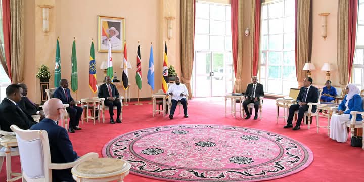 قائلا: نجتمع اليوم بدعوة من فخامة السيد الرئيس موسيفيني، رئيس جمهورية أوغندا، لإظهار التضامن مع إخواننا وأخواتنا في الصومال.