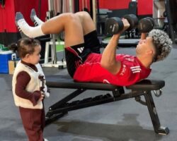 ووثق عاشور لحظات تدريبه عبر حسابه الرسمي على موقع التواصل الإجتماعي «إنستجرام» حيث ظهر وهو يركز على تمارينه الرياضية برفقة ابنته الصغيرة كتاليا، ليكمل قرار تنفيذ عقوبته داخل النادي.