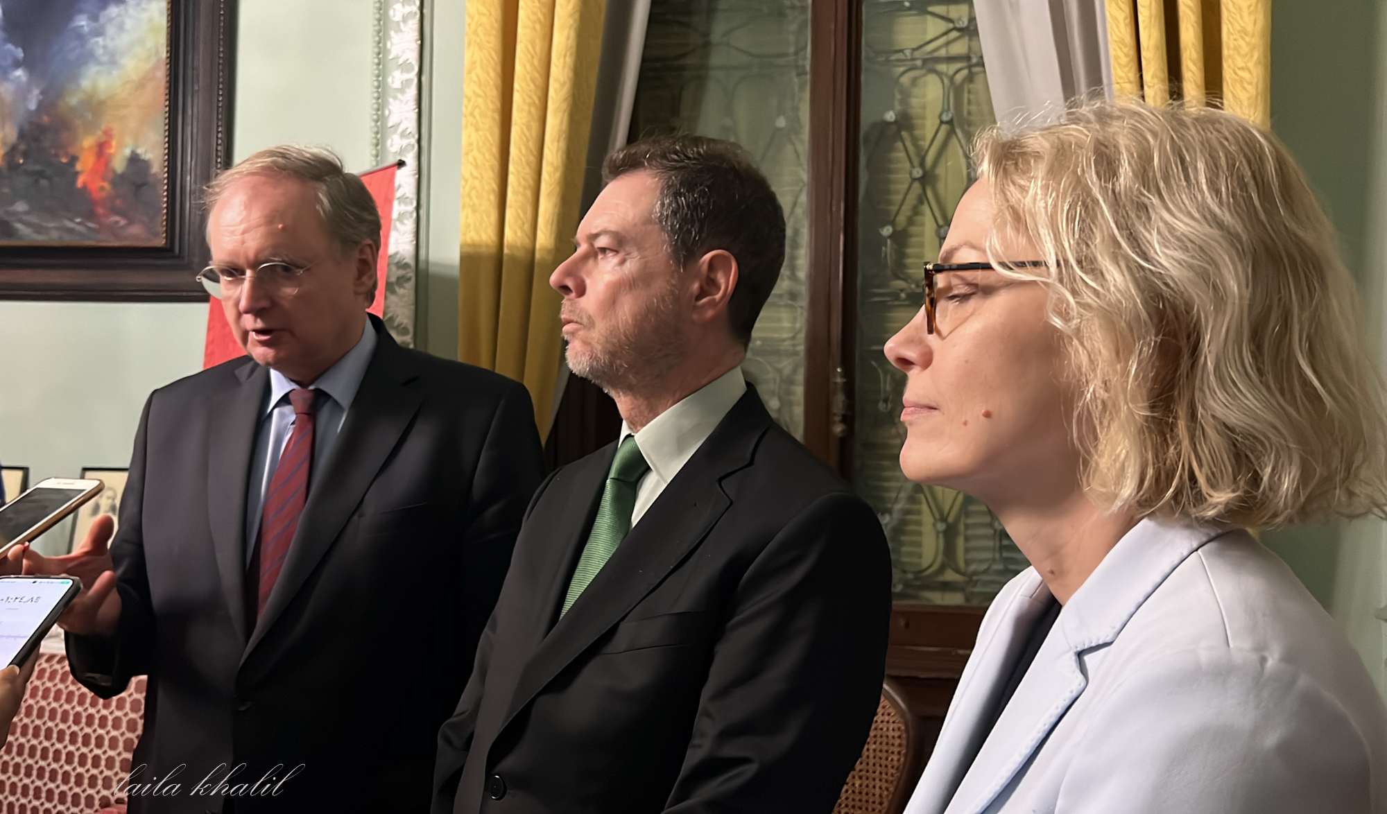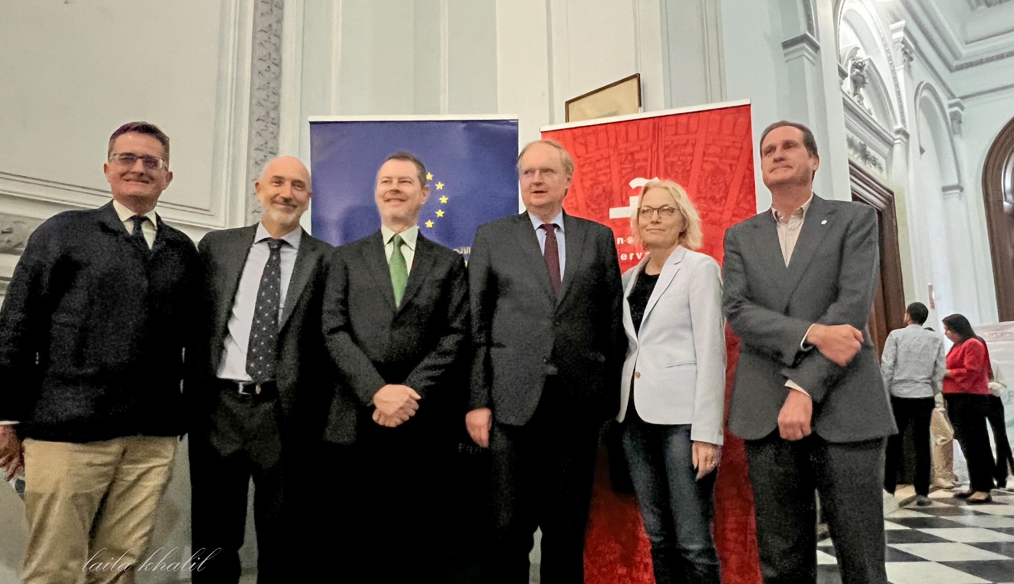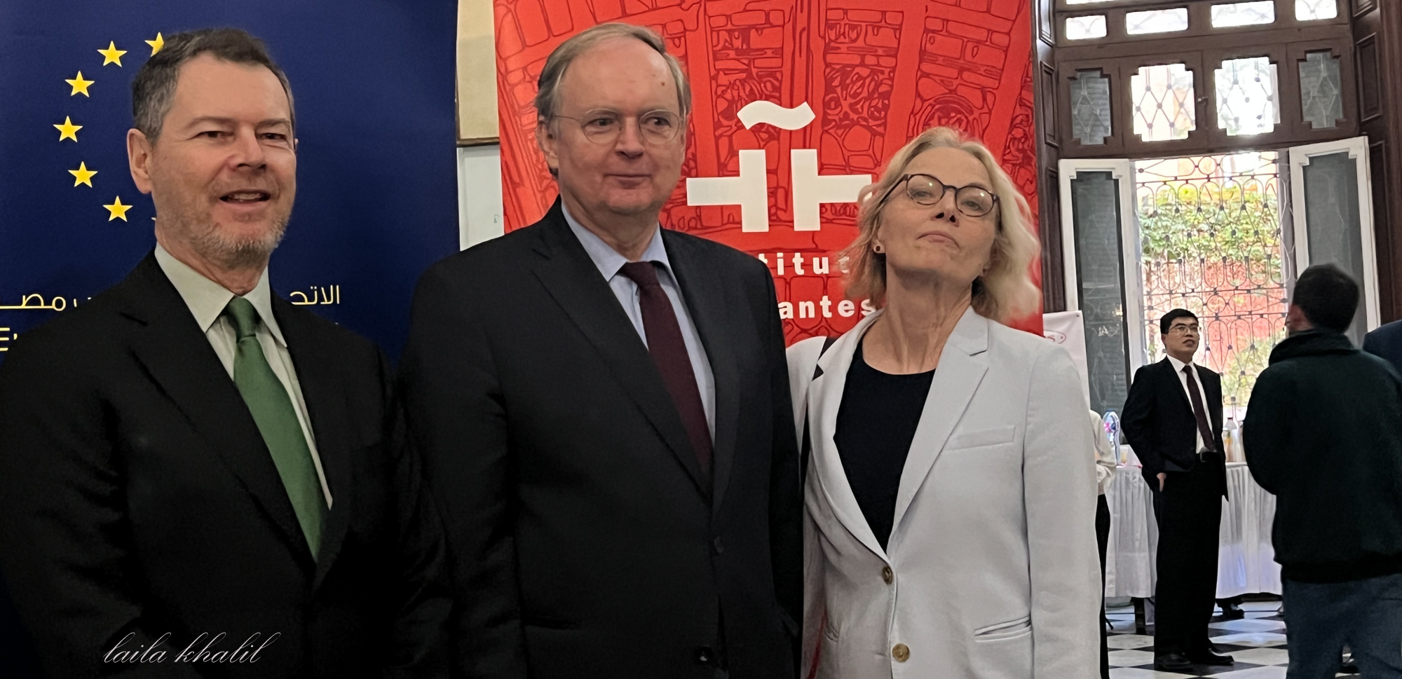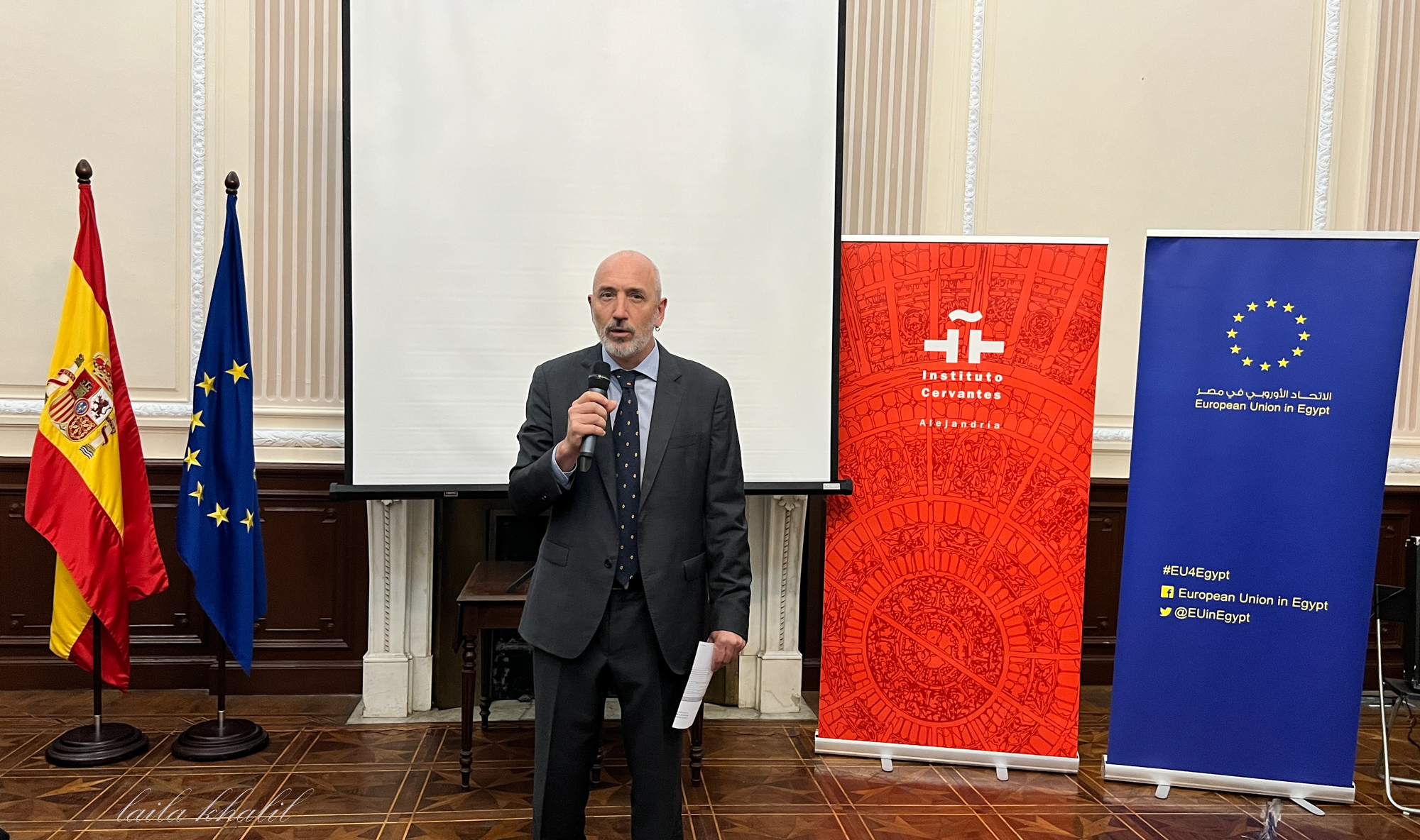 خلال مؤتمر صحفي بالمعهد الثقافي الأسباني ثربانتس ،بالإسكندرية،أقام ألفارو إيرانثو جوتييريث، سفير إسبانيا بالقاهرة، و كريستيان بيرغر، رئيس وسفير وفد الاتحاد الأوروبي، وإنجريد عامر سفيرة دولة إستونيا،