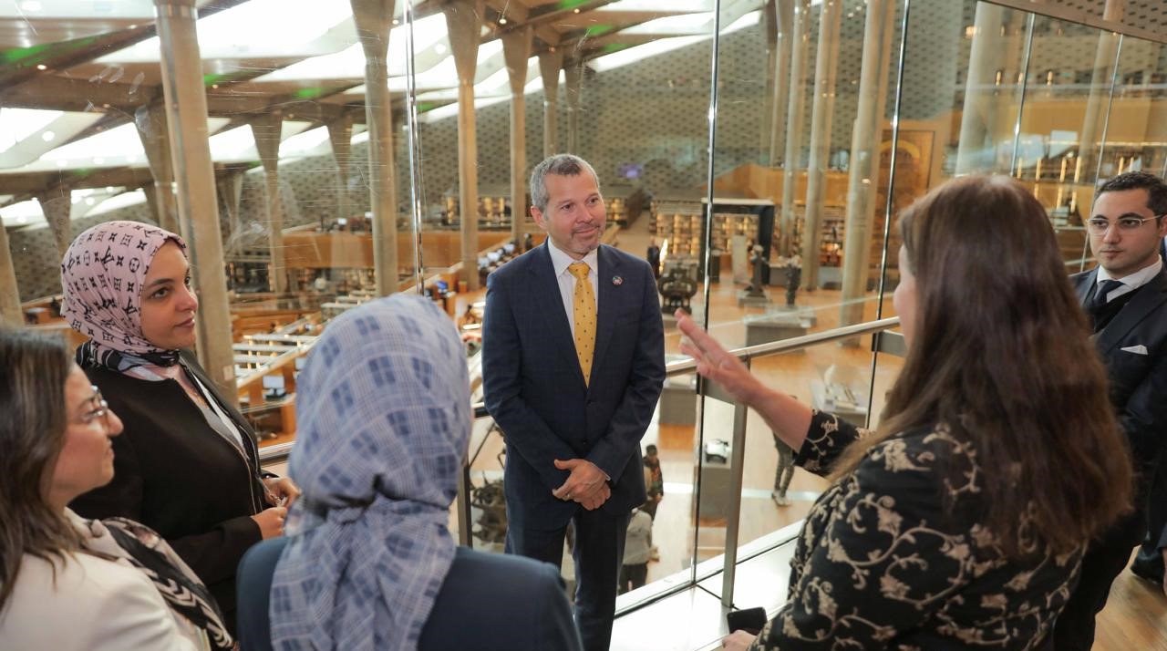 تفقد الضيوف قاعة الاطلاع الرئيسية، حيث تعرفوا على المشروعات المختلفة للمكتبة، بالإضافة إلى المعارض والمتاحف الموجودة داخل مكتبة الاسكندرية،