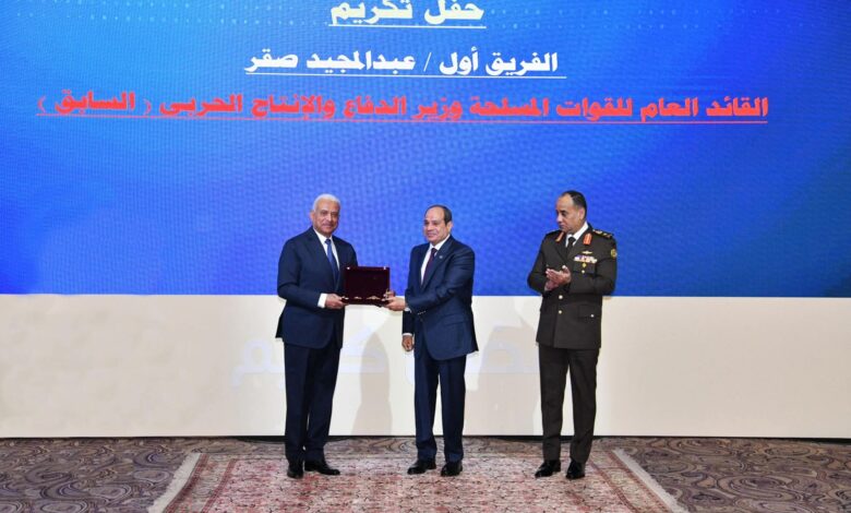 شهد الرئيس السيسي حفل تكريم الفريق أول عبد المجيد صقر وزير الدفاع السابق.