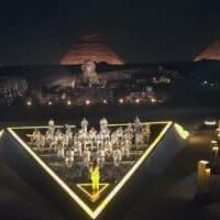 ثم عرض ختامي باستخدام الإضاءة والألعاب النارية وعروض الليزر، وجولة تفقدية للدرج العظيم وقاعة توت عنخ آمون.