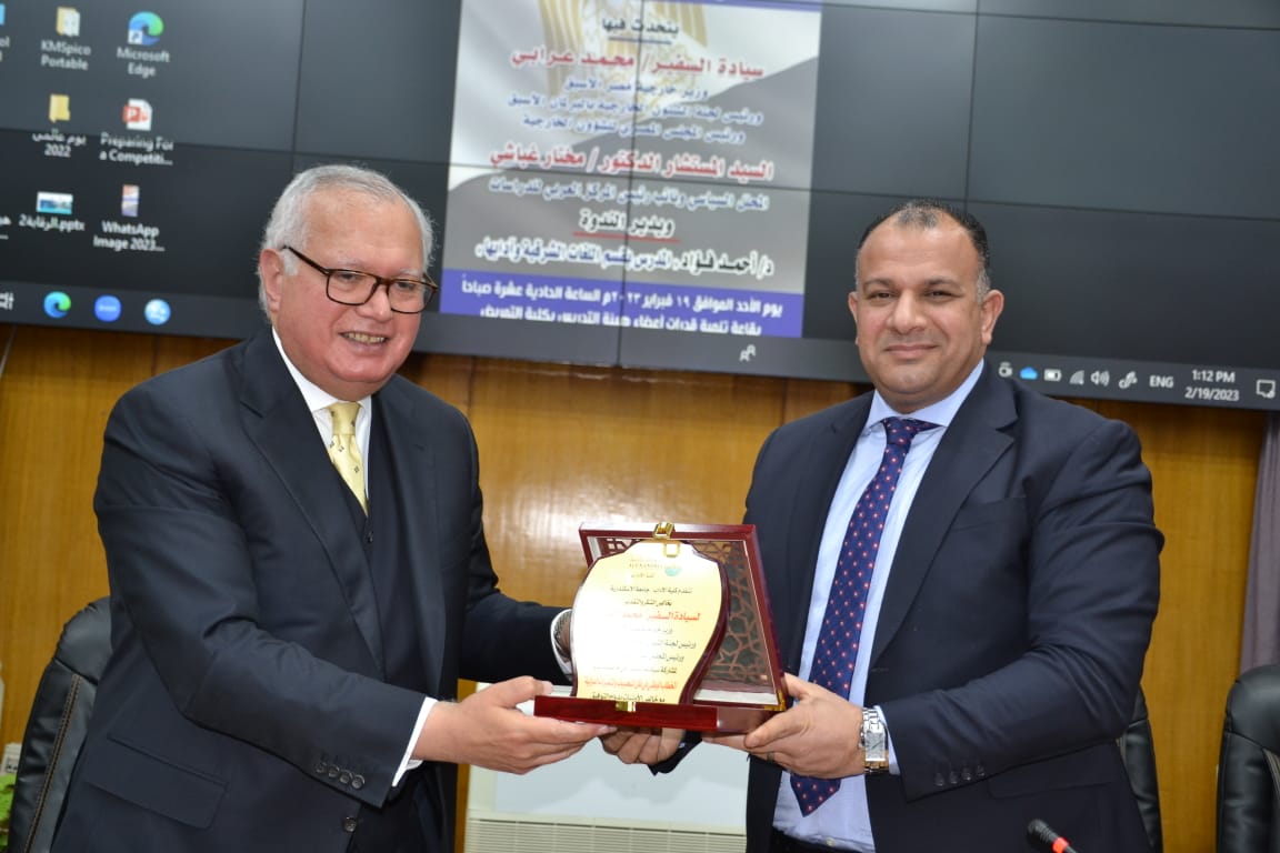 والتى عقدت تحت عنوان ” الخطاب الوطنى فى ظل التحديات و المتغيرات الدولية “، شارك فى إلقائها كل من السفير محمد العرابي وزير الخارجية الأسبق ورئيس لجنة الشئون الخارجية بمجلس النواب الأسبق ورئيس المجلس المصرى للشؤون الخارجية، والمستشار الدكتور مختار غباشى المحلل السياسي ونائب رئيس المركز العربى للدراسات، وذلك بقاعة المؤتمرات بكلية التمريض بحضور عمداء ووكلاء الكليات وأعضاء هيئة التدريس وطلاب الجامعة.