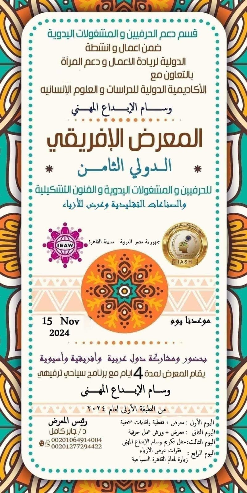 قريبا المعرض الأفريقى الدولي الثامن للحرفيين والمشغولات اليدوية.