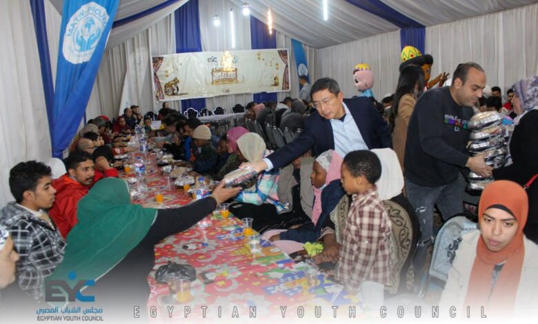 مجلس الشباب المصرى برئاسة الدكتور محمد ممدوح رئيس مجلس الأمناء وعضو مجلس حقوق الإنسان بيوزع الهدايا والملابس ولعب الأطفال وكراتين المواد الغذائية على ضيوف مائدة ضيوف مصر