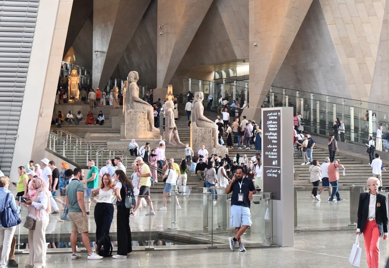 يواصل المتحف المصري الكبير استقبال زائريه لليوم السابع على التوالي منذ افتتاحه للجمهور في 4 نوفمبر الجاري