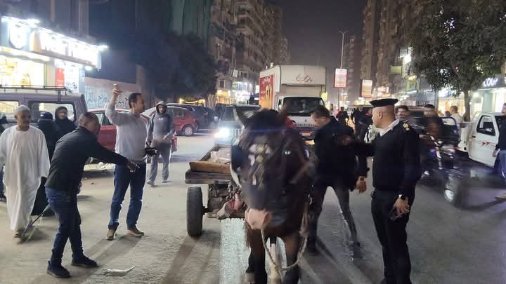 محافظة الجيزة تشن حملاتها علي الفريزة والنباشين وعربات الكارو والتروسيكلات بشارع فيصل