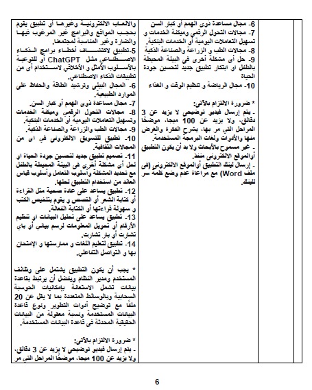 تتيح المسابقة التقدم في فرع واحد فقط، مع السماح بالأعمال الجماعية في فرعي التطبيقات والمواقع الإلكترونية والابتكارات العلمية بحد أقصى ثلاثة مشاركين، مع تحديد نسب المشاركة، بينما تستبعد الأعمال الجماعية في باقي الفروع، إلى جانب استبعاد الأعمال غير المستوفاة للشروط.