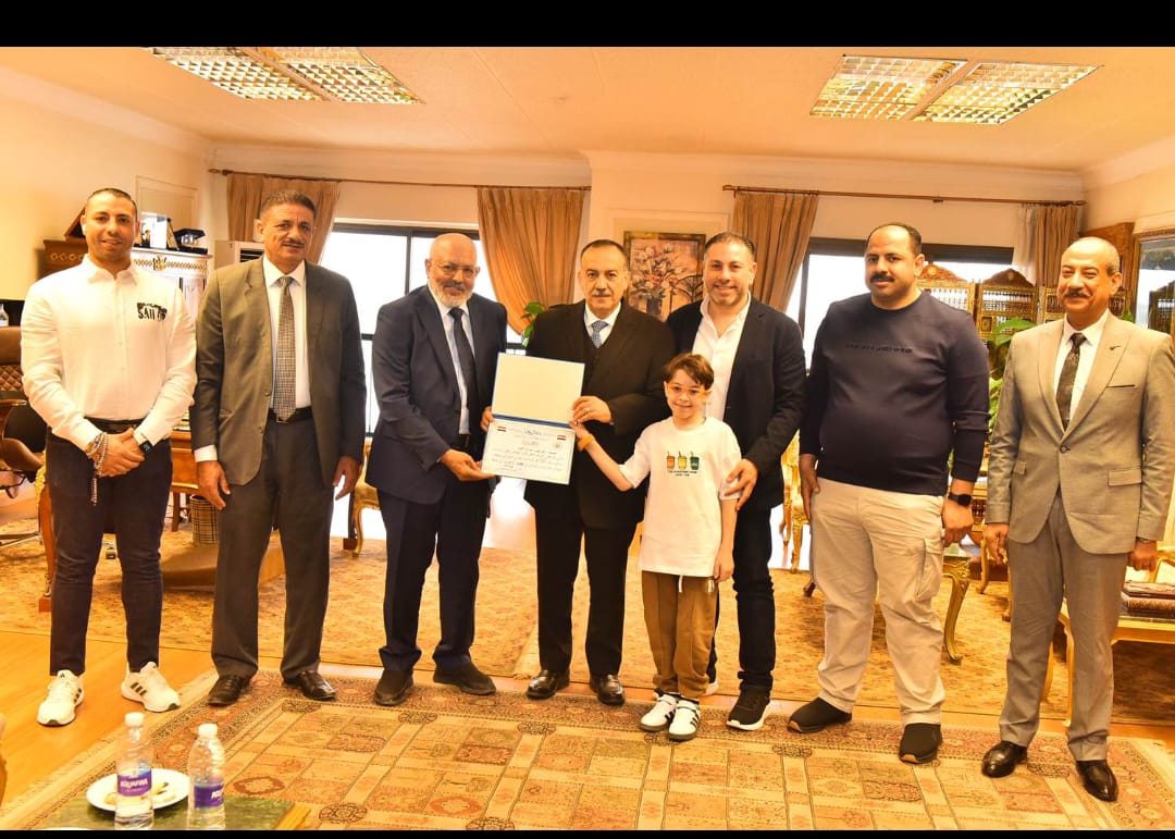 حيث قام المحافظ بتسليمه شهادة تقدير نظراً لجهوده في دعم المجتمع المحلي، وتحقيق التكافل الإجتماعي خلال الأعياد والمناسبات.