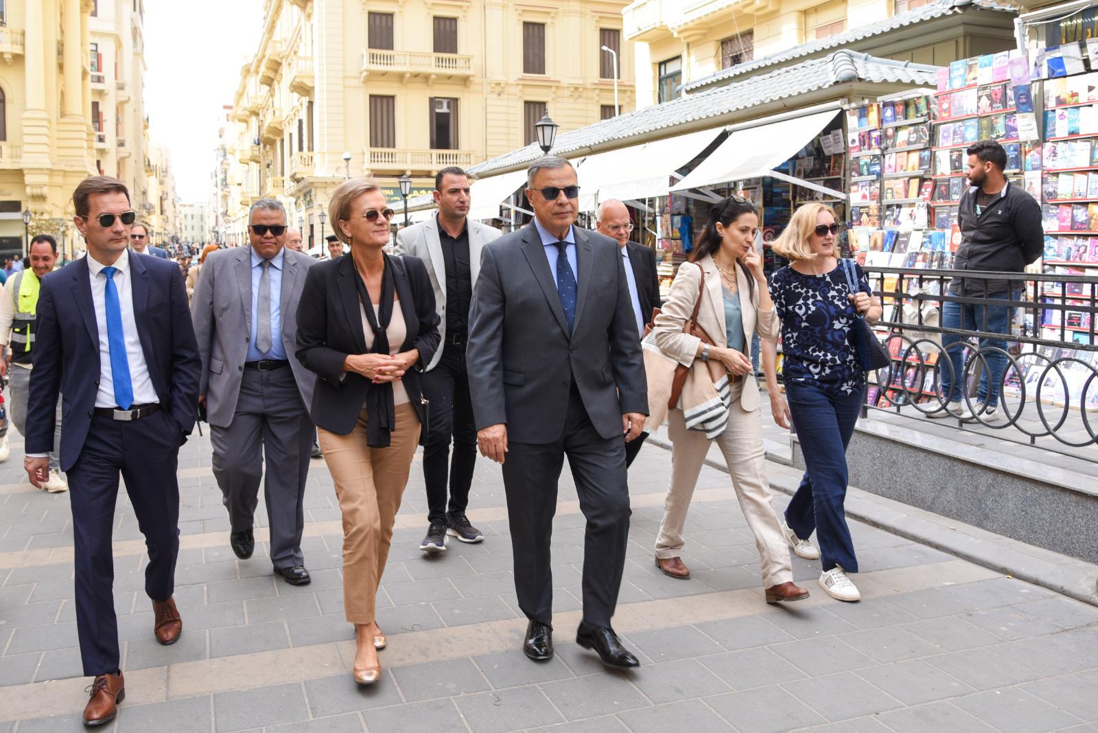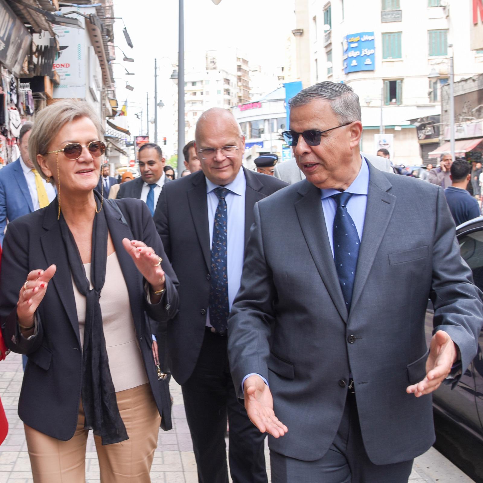 محافظ الإسكندرية وسفيرة الاتحاد الأوروبي يتفقدان مشروع إحياء شارع النبي دانيال التراثي