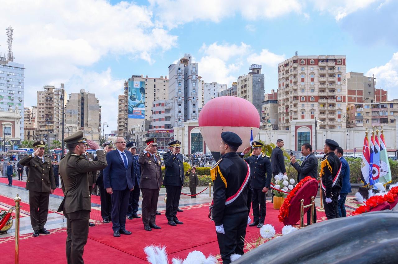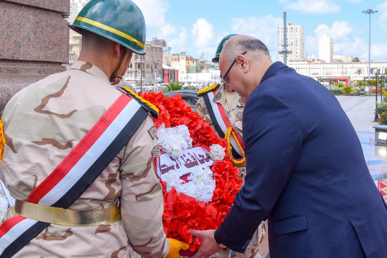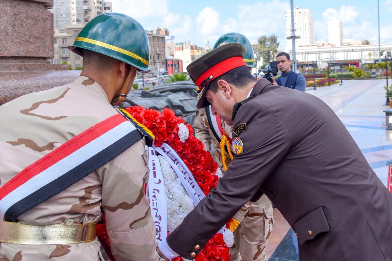 محافظ الإسكندرية و قائد المنطقة الشمالية يضعون إكليل الزهور للنصب التذكاري للشهداء