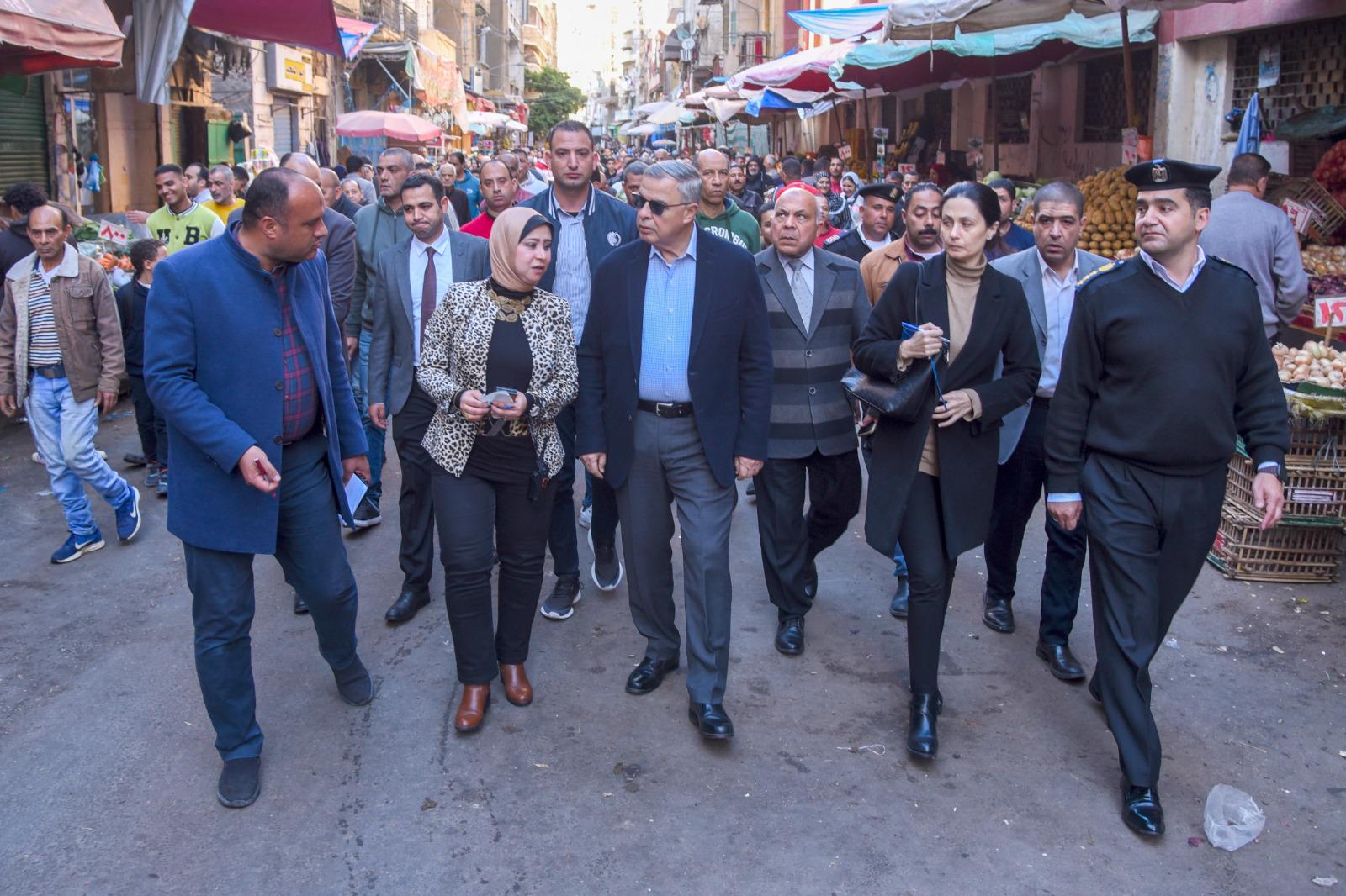 محافظ الإسكندرية يأمر بتحرير محاضر وتشميع عدد من المحال المخالفة داخل سوق زنانيرى