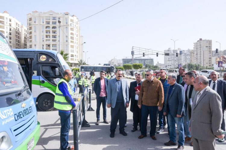 محافظ الإسكندرية يتفقد اصطفاف وسائل النقل البديلة لترام الرمل المقرر تشغيلها