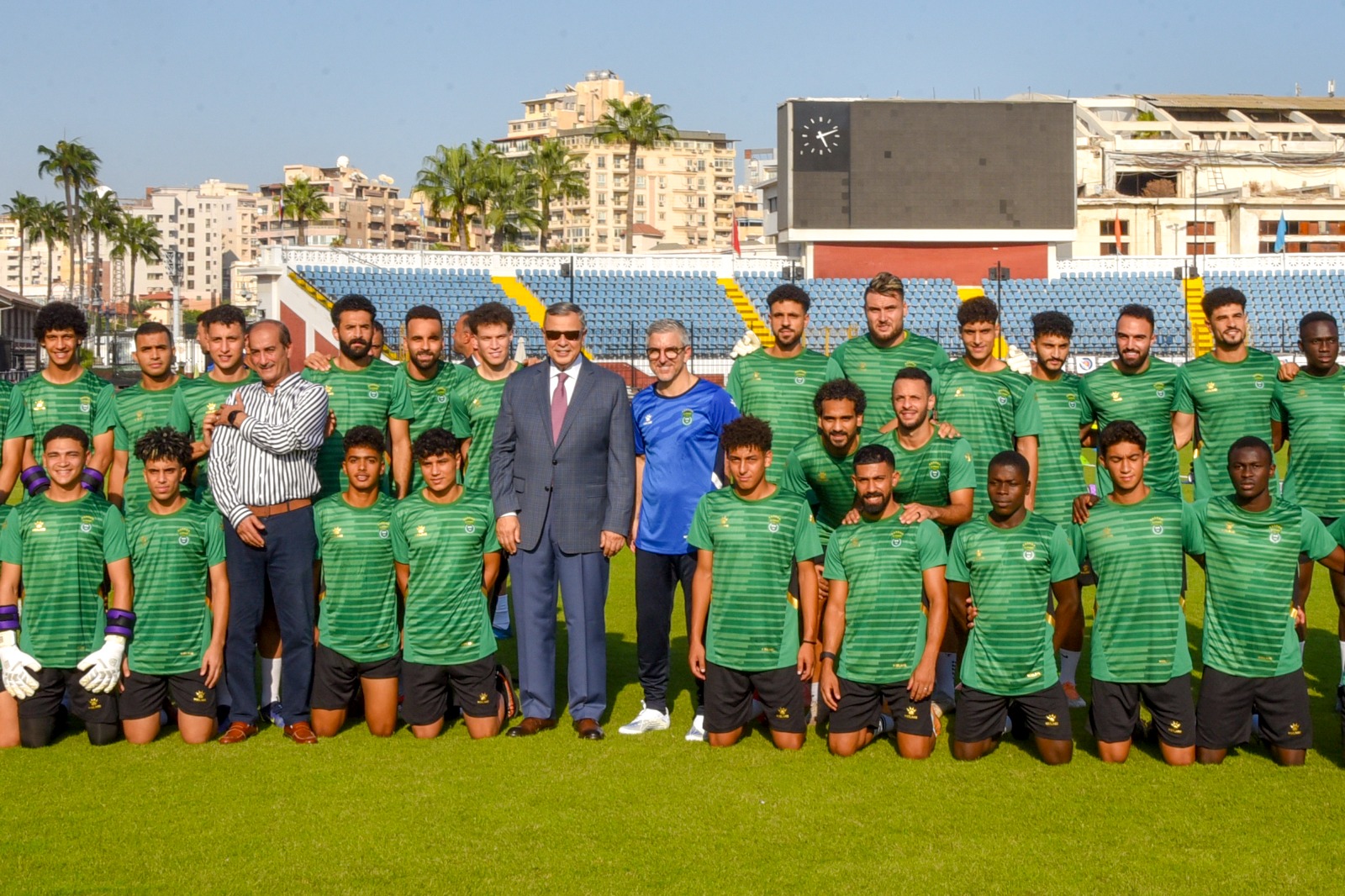 وقد صافح سيادته لاعبي نادي الاتحاد والجهاز الفني، و هنأ المدرب / بابا فاسيليو المدرب الجديد و الجهاز الفني بتوليهم مهام منصبهم، متمنيًا لنادي الاتحاد السكندري التوفيق.