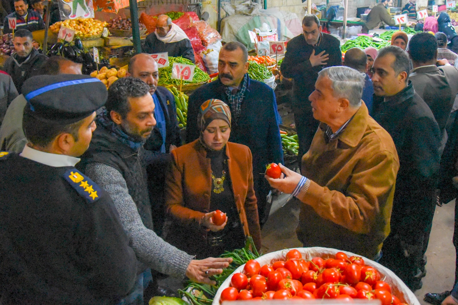 وخلال جولته داخل السوق ، استفسر محافظ الإسكندرية عن أسعار الخضروات والفاكهة والدواجن والأسماك ،