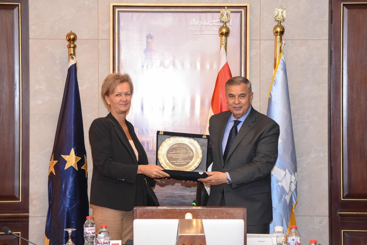 من جانبها، أعربت السفيرة عن سعادتها بزيارة الإسكندرية، وأكدت حرص الاتحاد الأوروبي على تعزيز الشراكة مع مصر، ودعم المشروعات التي تخدم مشروعات التنمية المستدامة، خاصة في مجالات النقل ومعالجة المياه وتطوير الأسواق.
