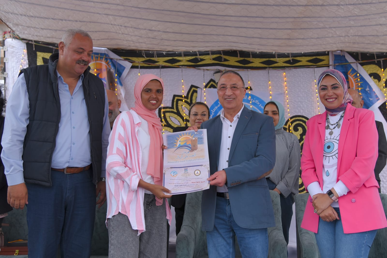 إيهاب حسام الدين فتحى ذكى من كلية فنون جميلة جامعة الإسكندرية ، وسارة أحمد وليد جابر من كلية التربية النوعية جامعة الإسكندرية ، كما فاز بدرع التميز الثانى