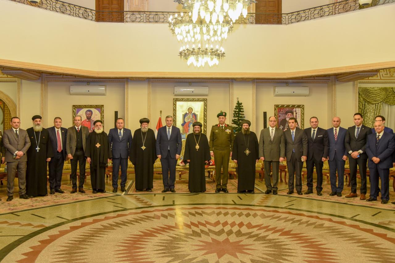 وتوجه الفريق أحمد خالد لزيارة الكنيسة الإنجيلية بالعطارين لمشاركة الطائفة الإنجيلية احتفالاتها بعيد الميلاد المجيد،