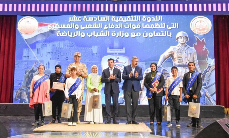 وفي ختام الندوة، قام وزير الشباب والرياضة ومحافظ الاسكندرية وقائد قوات الدفاع الشعبي والعسكري