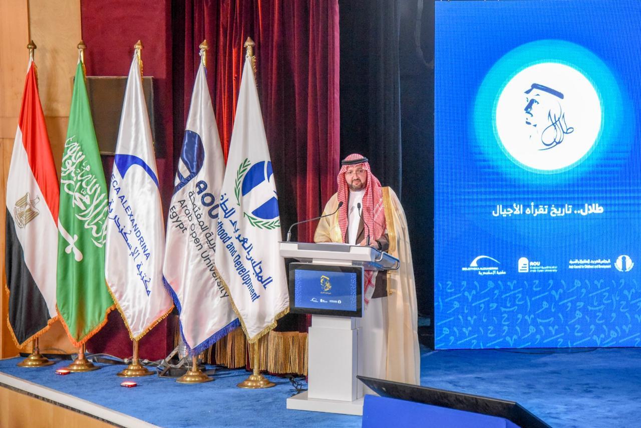 هذا وأضاف محافظ الإسكندرية أن اسم الأمير طلال بن عبد العزيز آل سعود مقترن بالعطاء والفكر المستنير الذي يرتكز على الثقافة والتعليم كركيزة أساسية لبناء الإنسان،