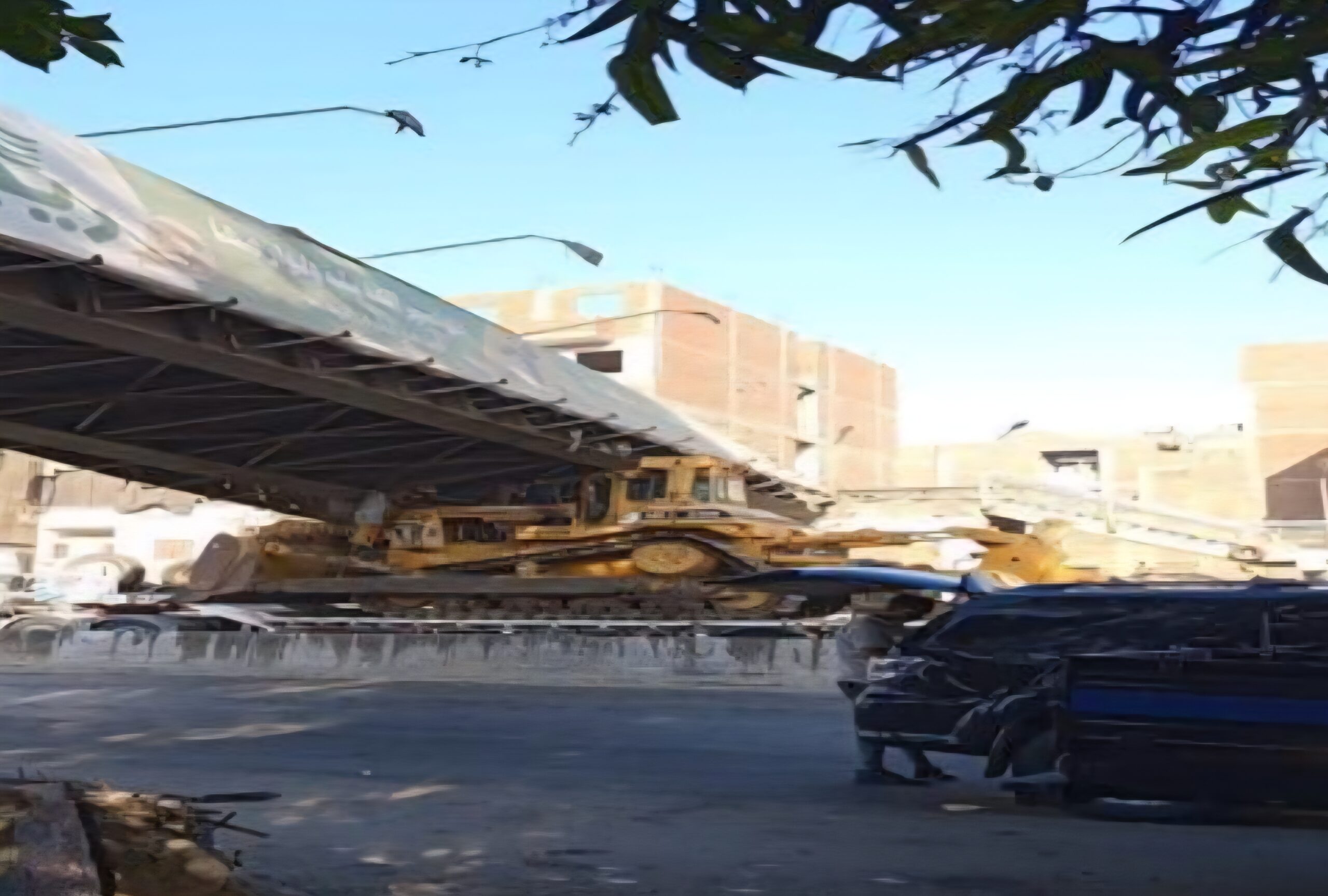 محافظ القليوبية يتابع حادث تحرك كوبري مشاة بطوخ إثر اصطدام بلدوزر به