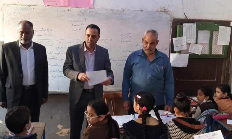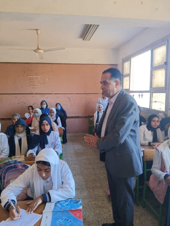 وتفقد مدير الإدارة عددًا من الفصول الدراسية لمتابعة أداء المعلمين أثناء الشرح وتفاعل الطلاب، واطمأن على تطبيق استراتيجيات التعليم النشط واستخدام الوسائل التعليمية الحديثة بما يسهم في تنمية مهارات الطلاب ودعم الفهم والاستيعاب. كما اطلع على كتب التقييمات ومستوى الطلاب في القراءة والكتابة، موجّهًا بضرورة التصحيح أولًا بأول ورصد الدرجات بدقة وشفافية، مع متابعة امتحانات شهر نوفمبر.