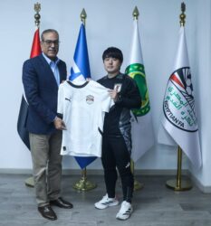 مصطفى عزام يستقبل رئيس بعثة منتخب اليابان ويتبادلان الدروع
