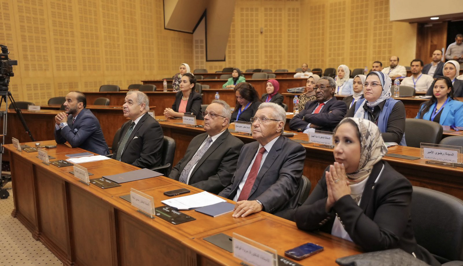 شارك في أعمال الجلسة الافتتاحية كل من الدكتور عادل البلتاجي، وزير الزراعة واستصلاح الأراضي الأسبق والدكتور يسري الجمل، وزير التربية والتعليم الأسبق، والدكتور حسين العطفي، وزير الموارد المائية والري الأسبق، إضافة إلى باحثين ومتحدثين من مختلف الدول العربية,