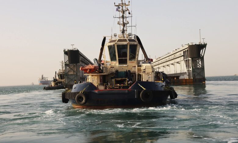 عملية عبور الحوض العائم مقطوراً عبر القناة استغرقت 24 ساعة وتطلبت اتخاذ تدابير ملاحية خاصة