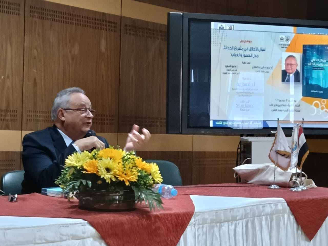 نظمت المكتبة المركزية الجديدة بجامعة القاهرة ندوة لمناقشة كتاب”سؤال الأخلاق فى مشروع الحداثة.. جدل الحضور والغياب” للأستاذ الدكتور أحمد زايد؛ مدير مكتبة الاسكندرية،
