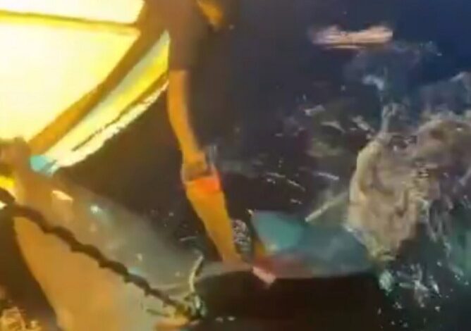 في القبض على مجموعة من الصيادين المسؤولين عن الواقعة المتداولة خلال الساعات الماضية أثناء قيامهم بصيد القرش الحوتي