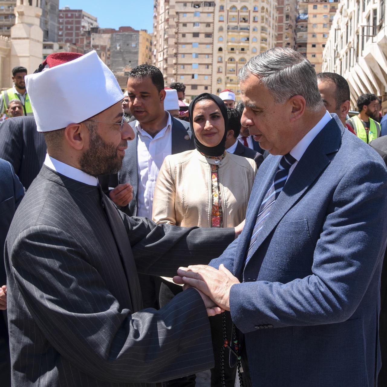 وزير الأوقاف ومحافظ الإسكندرية ييتفقدون تطوير ساحة مسجد أبي العباس المرسي