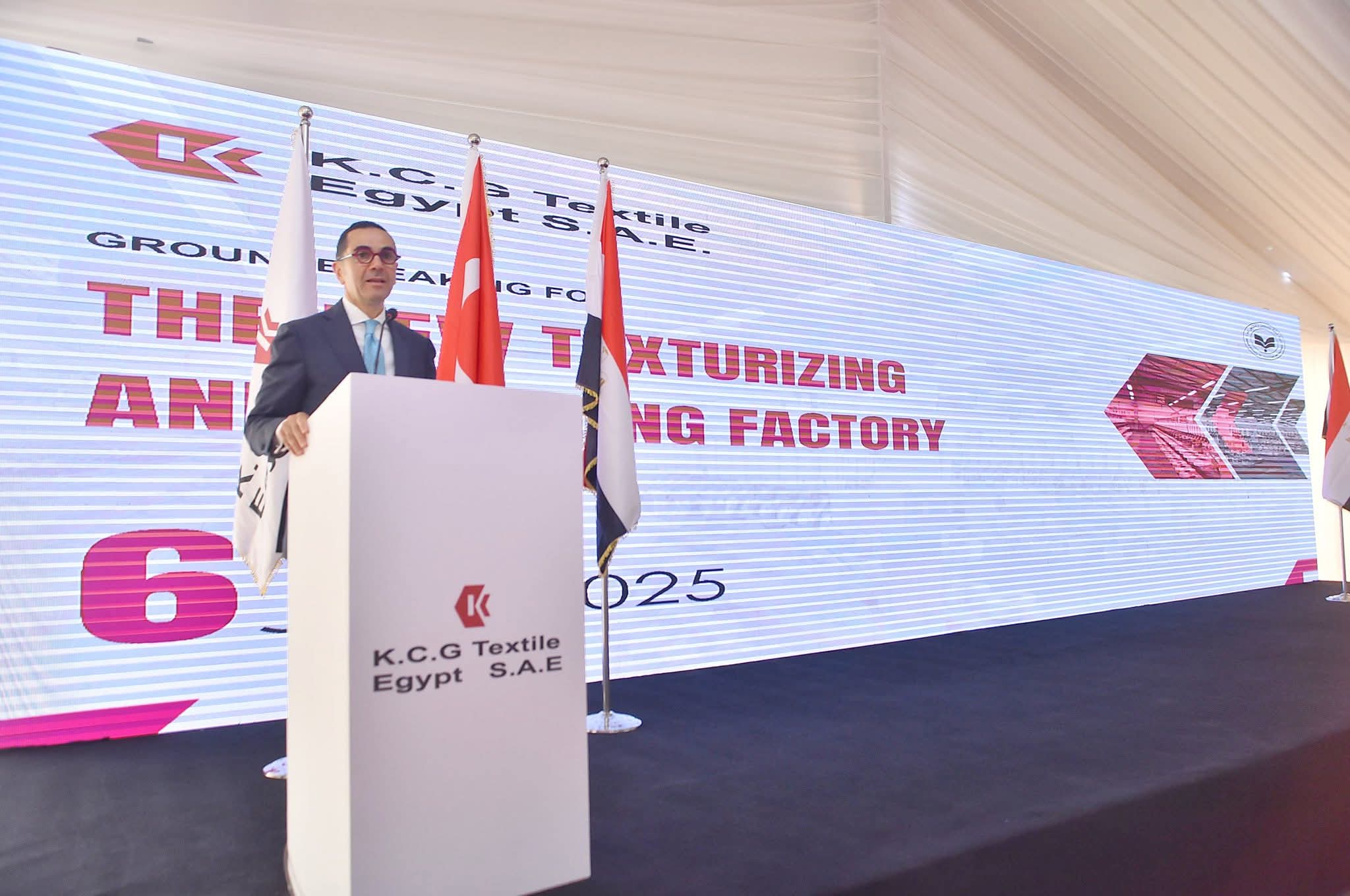 جاء ذلك خلال مشاركته بفعاليات وضع حجر الأساس لمصنع البرم الجديد بشركة KCG للمنسوجات بالعاشر من رمضان.