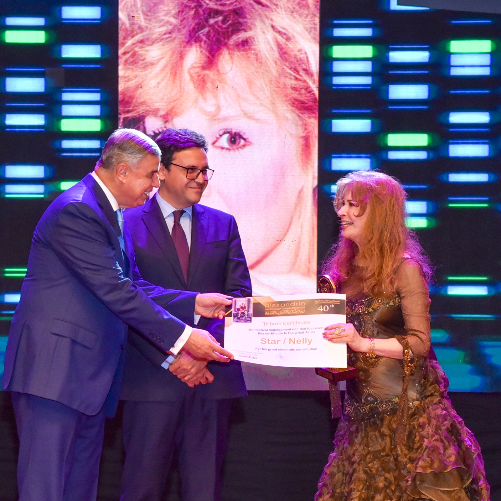 كما حرص وزير الثقافة، على تكريم عدد من النجوم، في مقدمتهم: النجمة “نيللي”، بمنحها درع المهرجان، والفنان لطفي لبيب، والناقد العراقي مهدي عباس، والممثلة المغربية سعاد خويي، ومن النجوم الأجانب:الممثلة الإيطالية، إيزابيل أدرياني، والفرنسية، آن باريلود، بمنحهم الميدالية الذهبية للمهرجان.