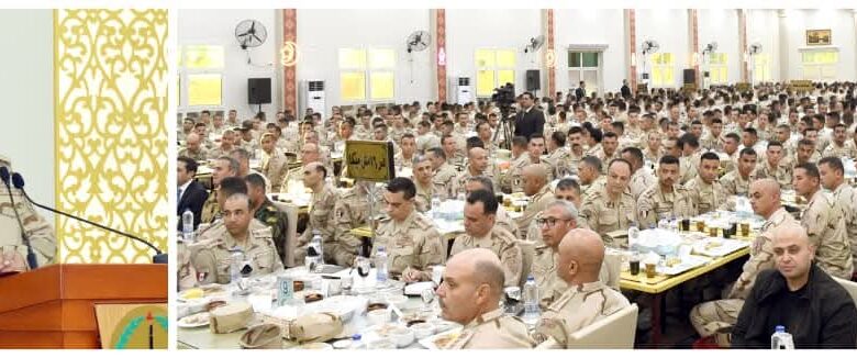 وزير الدفاع يشارك عددًا من مقاتلي القوات المسلحة بقيادة الجيش الثاني الميداني تناول وجبة الإفطار