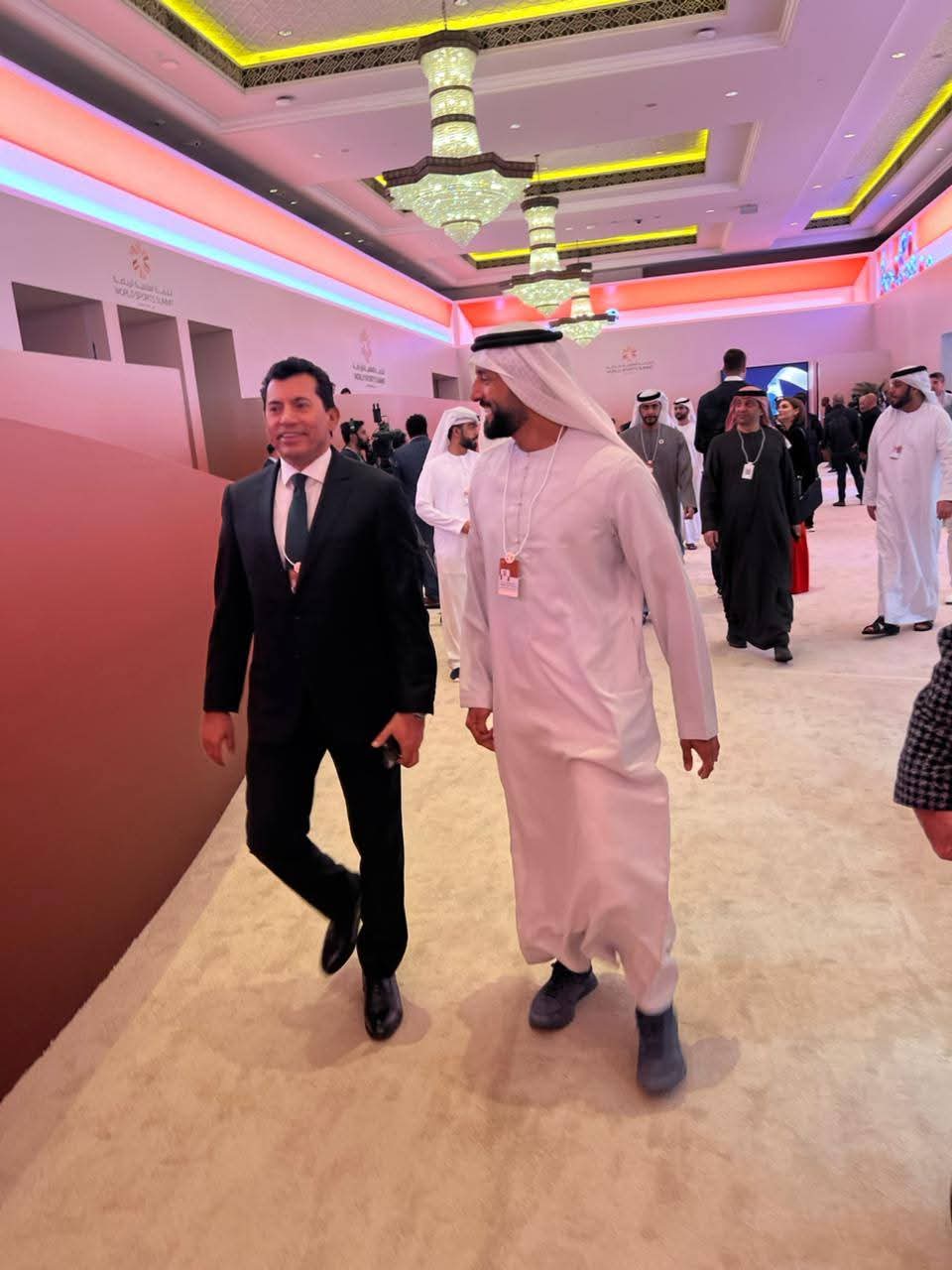 وزير الشباب والرياضة يشارك في فعاليات القمة العالمية للرياضة بدبي.