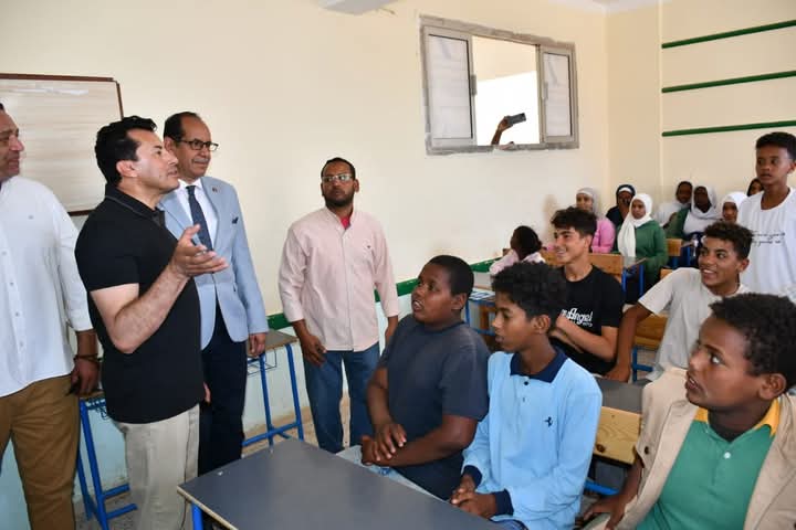 وزير الشباب والرياضة يتفقد تنفيذ فعاليات القوافل التعليمية والتنويرية بمدرسة سعد أبو ريده بشلاتين ضمن برنامج زيارته بالبحر الأحمر..