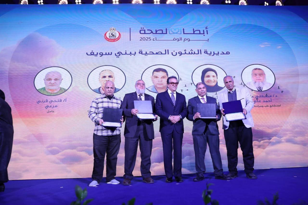 وزير الصحة يكرم العاملين بالمنظومة الصحية تقديرًا لجهودهم وتضحياتهم خلال عام 2025.