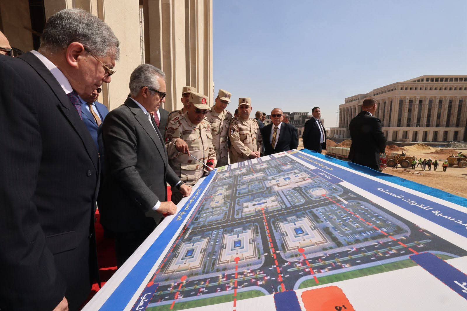 وفي مستهل الجولة استمع وزير العدل إلى عرض تفصيلي من السيد اللواء أ.ح – مساعد رئيس الهيئة الهندسية لمشروعات العاصمة – نائب رئيس الهيئة الهندسية للقوات المسلحة،
