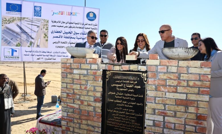 وزيرة التخطيط والتعاون الدولي ووزيرة التنمية المحلية ومحافظ الأقصر يضعون حجر الأساس للسوق الحضاري الجديد بقرية الحبيل بمركز البياضية بتكلفة 120 مليون جنية على مساحة 5 أفدنة لخدمة 220 الف مواطن