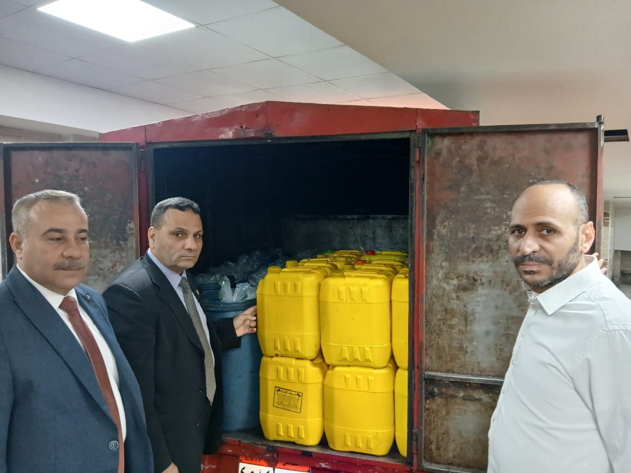 ضبط سيارة نصف نقل محملة بزيوت طعام مجهولة المصدر و تم مصادرة كميات من الزيوت تقدر ٦٦٦ كجم معبأة فى جراكن