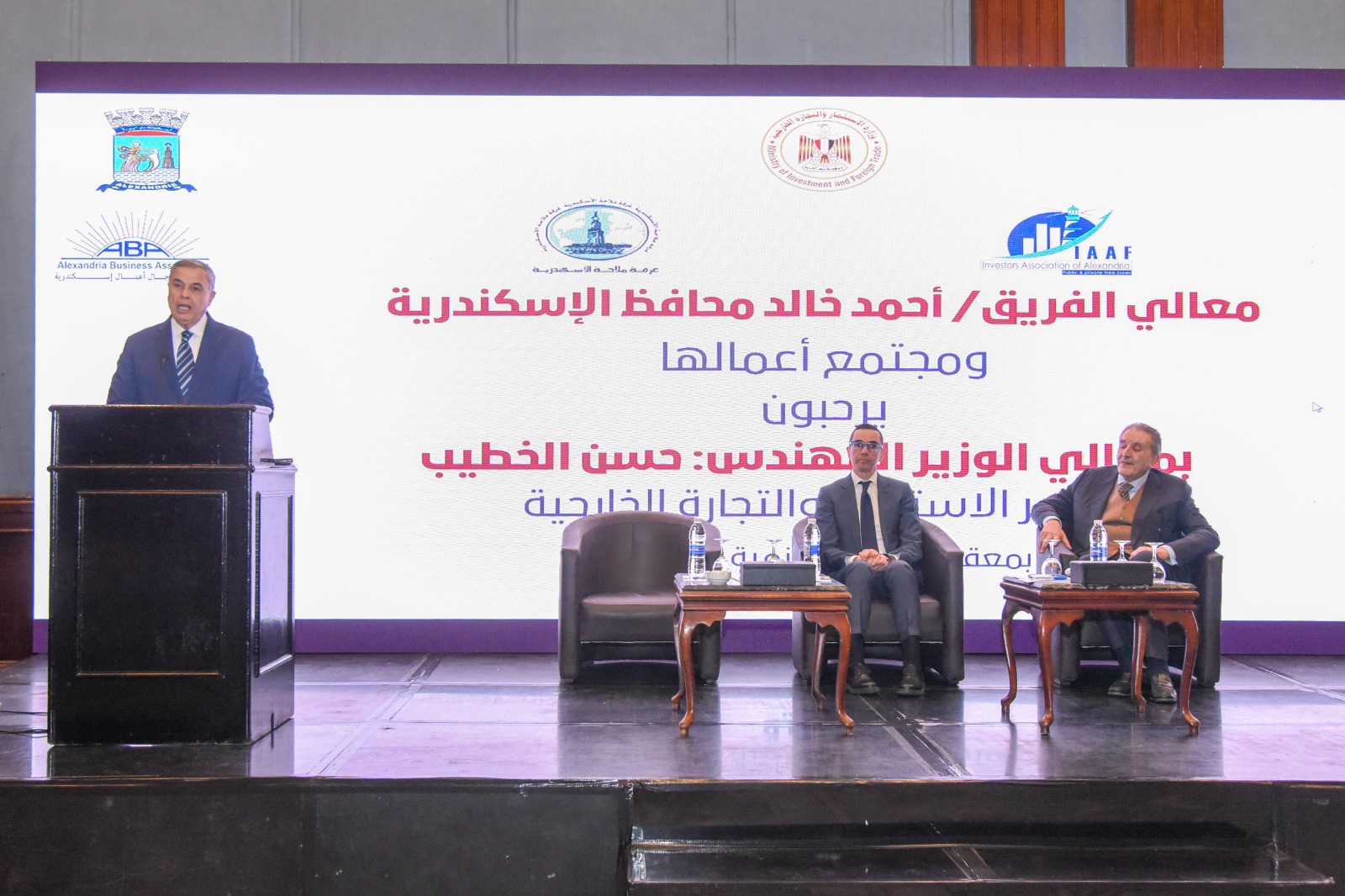 ومن جانبه رحب الفريق/ أحمد خالد حسن سعيد محافظ الإسكندرية، بالسيد وزير الاستثمار والتجارة الخارجية، وممثلي مجتمع الأعمال السكندري على أرض الإسكندرية المدينة التجارية الأولى لمصر مثمنًا جهود وزارة الاستثمار والتجارة الخارجية الفعالة نحو زيادة فرص الاستثمار وتشجيع الاستثمارات.