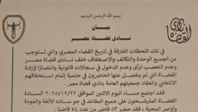 نادي قضاة مصر يصدر بياناً مهما بشأن الانتخابات نادي قضاة مصر يصدر بياناً مهما بشأن الانتخابات أعلن نادي قضاة مصر…